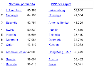 Negara-negara kapitalis di Eropa Barat dan Amerika Utara memiliki pendapatan perkapita yang tinggi. Pendapatan perkapita yang tinggi berarti daya beli tinggi, kesejahteraan juga lebih baik. Hal tersebut dapat dilihat pada table di bawah dimana pendapatan perkapita 10 negara tertinggi pada tahun 2010