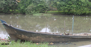 Ada lagi pemandangan yang unik, ada pecahan perahu di tengah sungai, padahal pemandangannya sangat bagus, dan banyak sekali burung-burung bertengger disekitar perahu untuk mencari makan