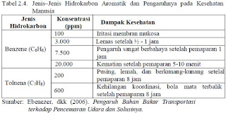 a. sumber : emisi kendaraan bermotor, kilang minyak. b. Dampak : menimbulkan iritasi pada membrane mukosa dan bila terhisap oleh paru-paru akan menimbulkan luka di bagian dalam dan timbul infeksi.