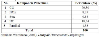 Kondisi udara Indonesia kian memprihantinkan. Menurut data dari Badan Kesehatan Dunia (WHO), pencemaran udara di Indonesia, khususnya di kotakota besar di Indonesia telah mengalami tingkat yang mengkhawatirkan dibandingkan dengan standar WHO. Berdasarkan data yang ada, total estimasi pollutant CO yang diestimasikan dari seluruh aktivitas adalah sekitar 686,864 ton pertahun atau 48,6 persen dari jumlah emisi lima pollutant. Penyebab dari pencemaran udara itu sekitar 80 persen berasal dari sektor transportasi, dan 20 persen industri serta limbah domestik. Sedangkan emisi karbon akibat deforestasi dan degradasi hutan sebesar 20 persen.
