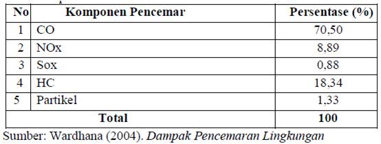 Kondisi udara Indonesia kian memprihantinkan. Menurut data dari Badan Kesehatan Dunia (WHO), pencemaran udara di Indonesia, khususnya di kotakota besar di Indonesia telah mengalami tingkat yang mengkhawatirkan dibandingkan dengan standar WHO. Berdasarkan data yang ada, total estimasi pollutant CO yang diestimasikan dari seluruh aktivitas adalah sekitar 686,864 ton pertahun atau 48,6 persen dari jumlah emisi lima pollutant. Penyebab dari pencemaran udara itu sekitar 80 persen berasal dari sektor transportasi, dan 20 persen industri serta limbah domestik. Sedangkan emisi karbon akibat deforestasi dan degradasi hutan sebesar 20 persen.