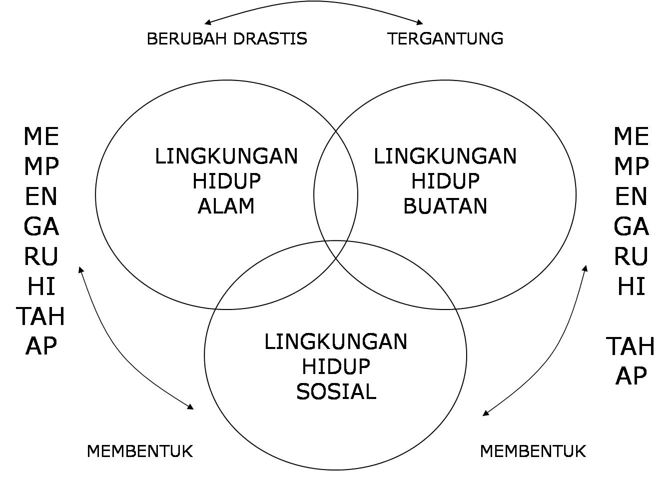 Gambar 1. Lingkungan hidup (manusia) merupakan suatu kesatuan dari lingkungan hidup alam, lingkungan hidup binaan dan lingkungan hidup sosial (Soerjani, 1997)