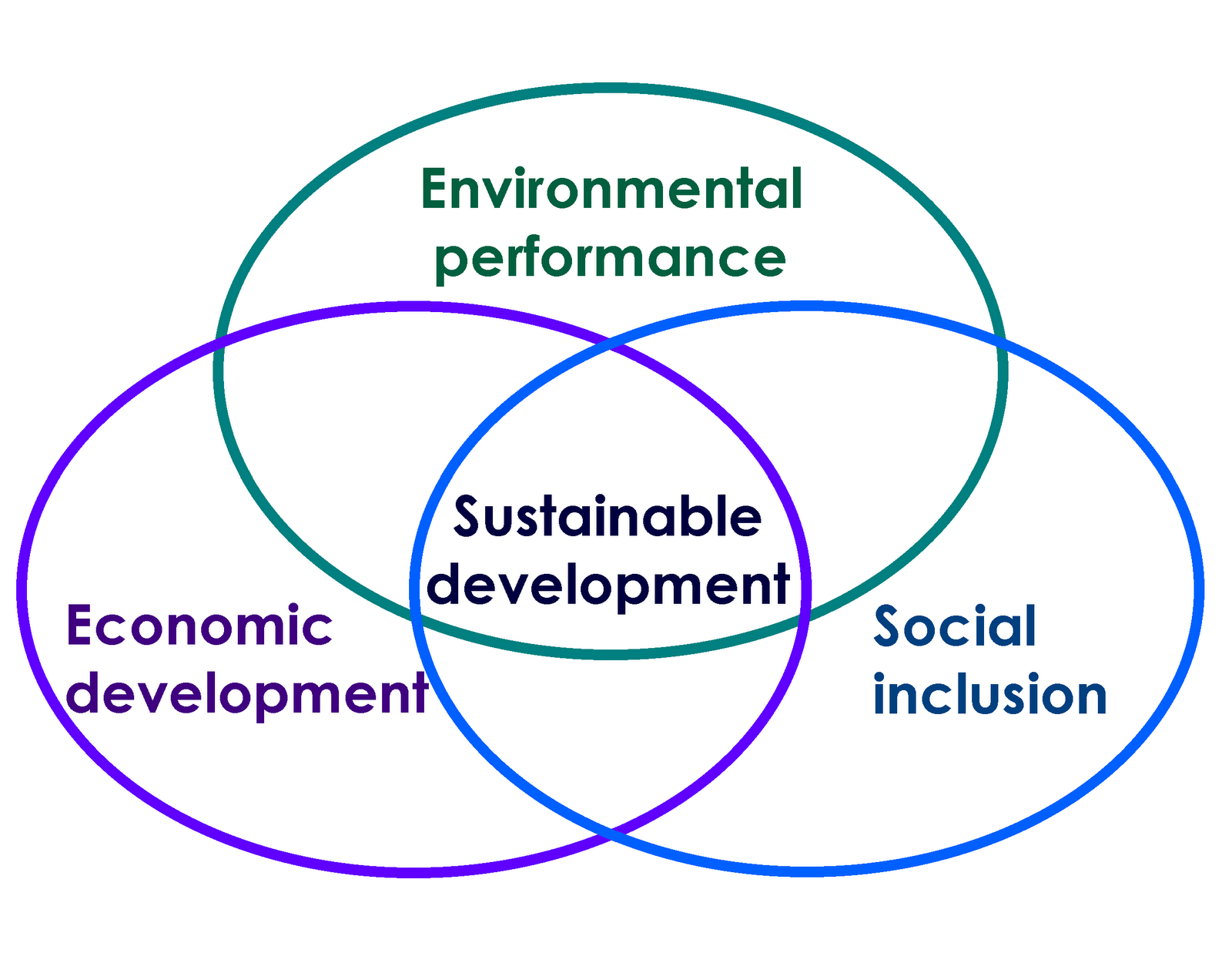 Aspek ekonomi ditambahkan pada aspek ekologi dan sosial terdahulu, seperti dinyatakan oleh the Brundtland Report pada 1987. Pembangunan berkelanjutan pertama kali didefinisikan tahun 1987 oleh Komisi Dunia pada Lingkunan dan Pembangunan, ketuai oleh Gro Harlem Bruntland, yang merupakan perdana menteri Norwegia pada saat itu.