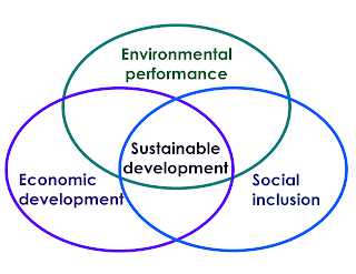 Dengan kata lain, pembangunan adalah esensial untuk pemenuhan kebutuhan manusia dan meningkatkan kualitas kehidupan manusia. Pada saat yang sama pembangunan harus berlandaskan pada efisiensi dan penggunaan lingkungan yang bertangungjawab dari seluruh sumberdaya masyarakat yang langka: alam, manusia, dan sumberdaya ekonomi.